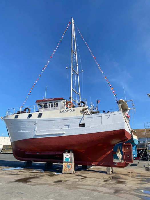 Début novembre 2026, des nouvelles du "Grand Largue: Je me permet de vous envoyer des photos du Grand largue, qui vient de sortir de carénage, et qui est sur le point de rentrer chez lui.